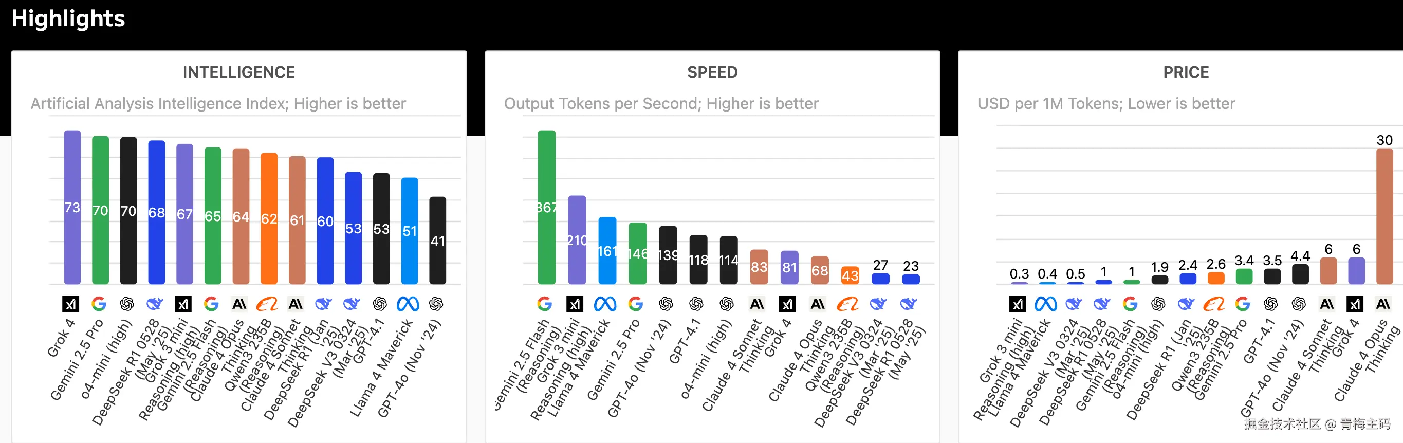 第三,不同模型在智力、速度、价格三个维度上各有侧重,这为用户提供了更多选择空间,也推动了整个行业的多元化发展。