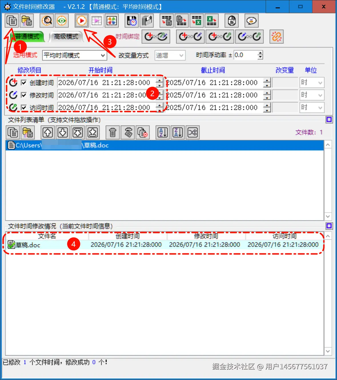 平均时间模式:设定时间段后,根据文件数量将时间均匀分布(注意文件顺序会影响时间分配结果)。