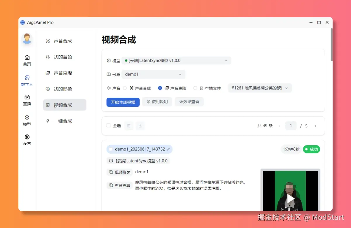 AigcPanel是一个简单易用的一站式AI数字人系统,小白也可使用。 支持智能直播、视频合成、声音合成、声音克隆,简化本地模型管理、一键导入和使用AI模型。