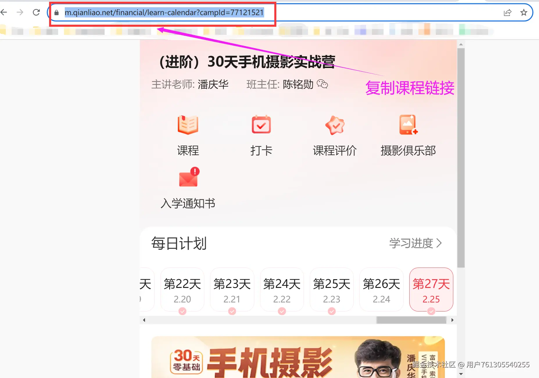 2.从课程官网下选择任意一个课程复制其网址
