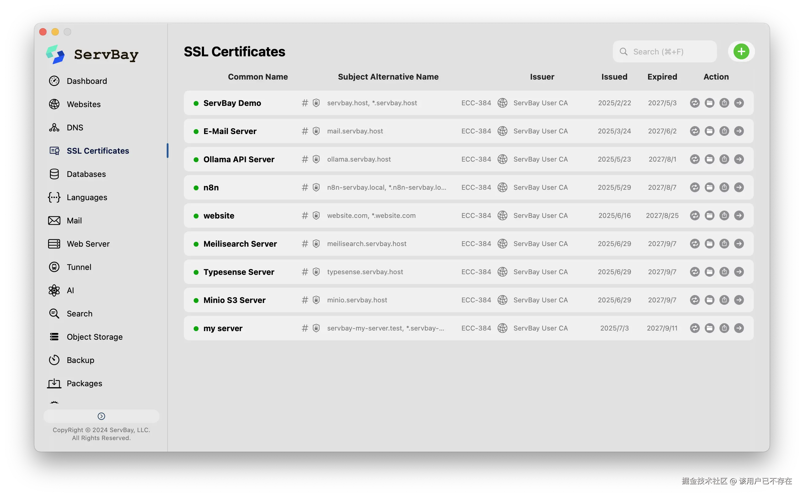 一键搞定 SSL 证书: 想在本地搞个 https 链接,以前得自己折腾半天证书,浏览器还老弹不安全的警告,烦不烦?用ServBay,点一下鼠标,本地的SSL证书就自动配好了,让你的本地环境跟线上一样专业。