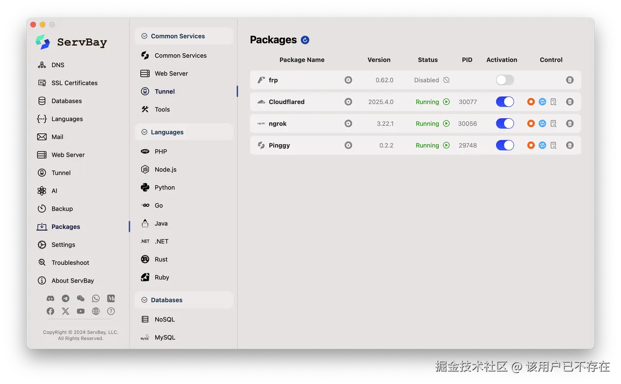 这时候,一个好用的集成工具就能救大命。比如 ServBay,它就是开发环境全家桶。无论你想用Pyth、Go、还是通过Node.js跑JavaScript,甚至是Rust,它都能帮你一键搞定。你不用再自己去手动安装和配置那些乱七八糟的服务,点几下鼠标,一个干净隔离的开发环境就安排得明明白白。
