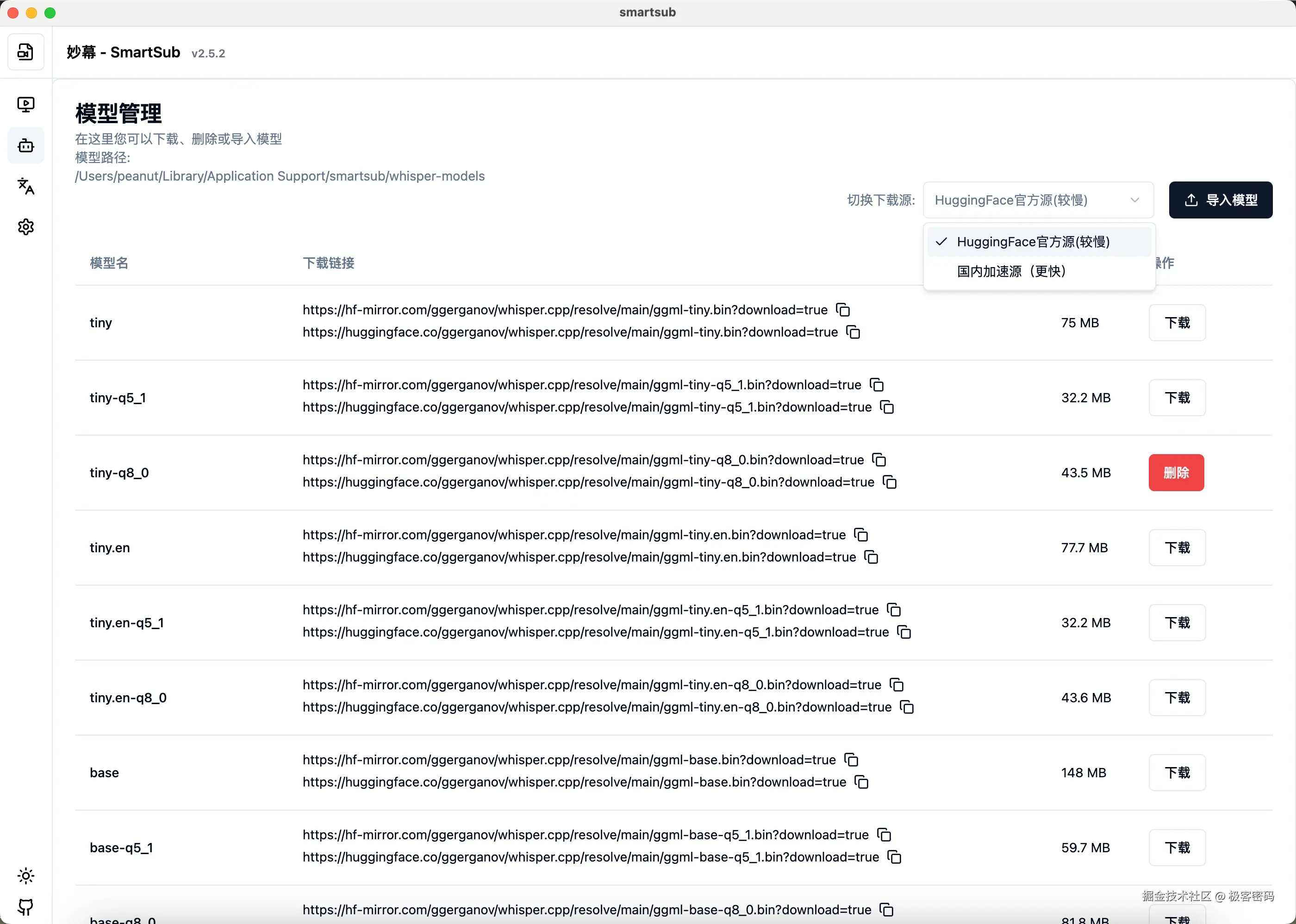 如果遇到下载比较慢的情况,建议切换至国内模型镜像站点