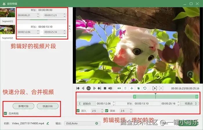 步骤3:结束录制时系统将自动进入预览界面,用户可以实时检查视频效果。如果需要进一步调整,可以点击进入 “高级剪辑” 模块进行剪辑操作。这里支持精准裁剪多余片段、添加转场特效等功能。