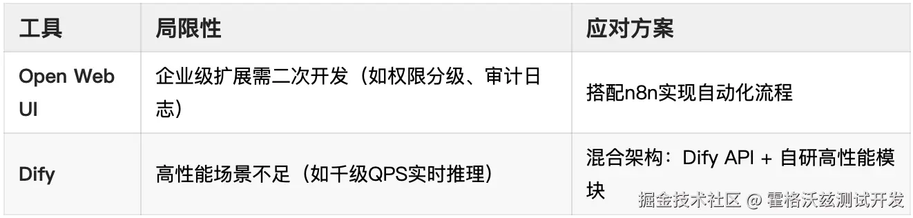 企业可结合“Dify核心层 + Open WebUI交互层”的混合架构,兼顾开发效率与用户体验。