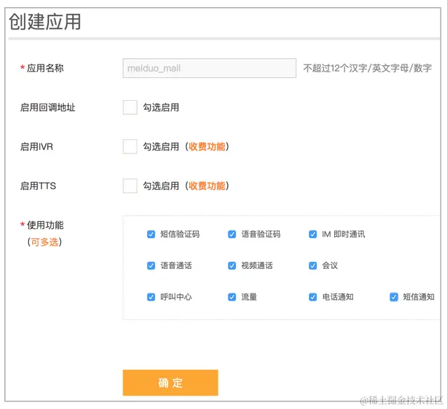 3.容联云创建应用