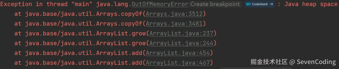 出现了java.lang.OutOfMemoryError: Java heap space的堆内存溢出。