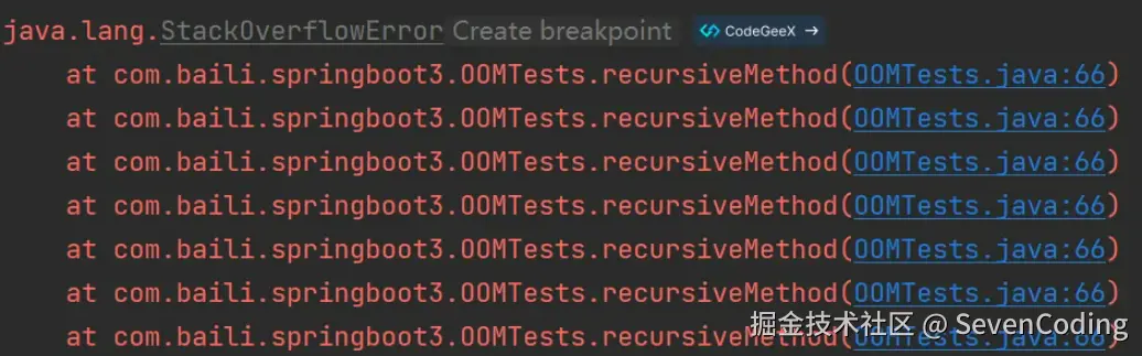 我们在业务代码中可能会经常写一些 递归调用,如果递归的深度超过了JVM允许的最大深度,可能会出现栈内存溢出问 题。