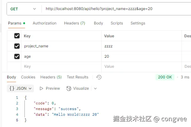 return ApiResponse.success("Hello World!" + param.getName() + " " + param.getAge());