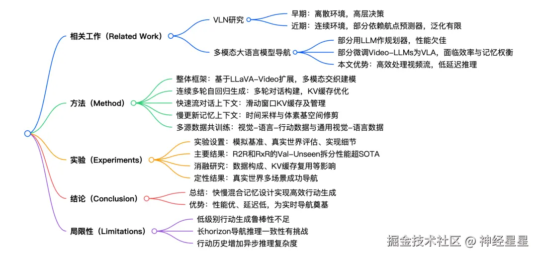 本文提出了一种名为 StreamVLN 的流式 VLN 框架,该框架采用混合慢快上下文建模策略,支持对交错的视觉、语言和动作输入进行多模态推理。快速流式对话上下文通过活动对话的滑动窗口促进响应式动作生成,而缓慢更新的记忆上下文则利用一种三维感知的令牌剪枝策略压缩历史视觉状态。