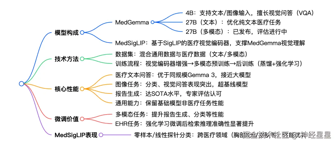 本文介绍了 MedGemma,这是一组基于 Gemma 34B 和 27B 的医学视觉-语言基础模型。 MedGemma 在图像和文本上的医学理解和推理方面展示了先进的能力,显著超过了同规模生成模型的性能,并接近了任务特定模型的表现,同时保持了 Gemma 3 基础模型的一般能力。 MedGemma 系列提供了一个坚实的医学图像和文本能力基础,有望大幅加速医学研究及下游应用的开发。