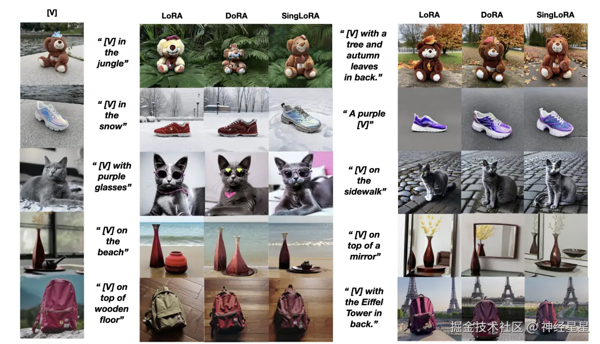 SingLoRA 通过将权重更新表示为单个低秩矩阵与其转置的分解来重新定义低秩适应。这种简单的设计内在地消除了矩阵间的尺度冲突,确保了优化过程的稳定性,并且大约将参数数量减少了一半。研究团队在无限宽度神经网络框架内对 SingLoRA 进行了分析,实验结果表明其设计本身就能保证特征学习的稳定性。