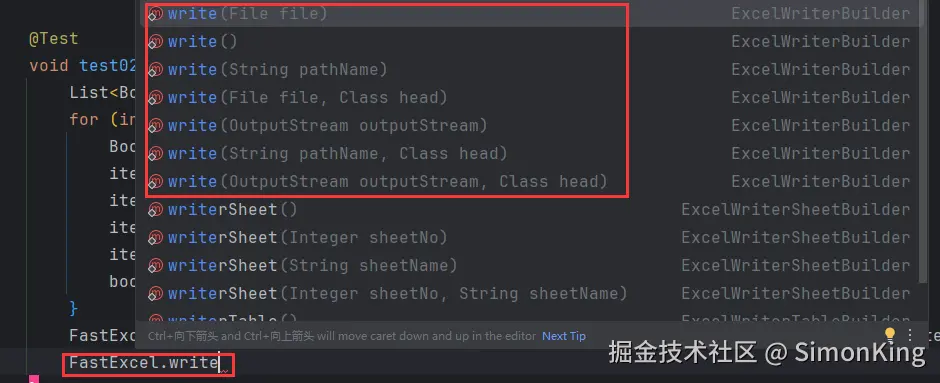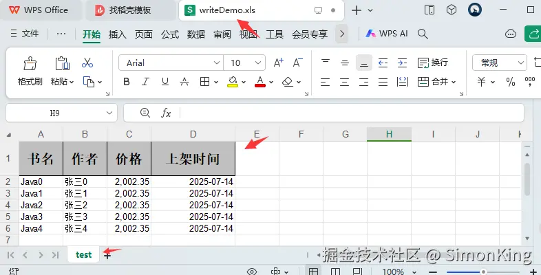 sheet():写入sheet的位置,默认第一个sheetName("test"):自定义sheet的名称doWrite():要写入的数据源