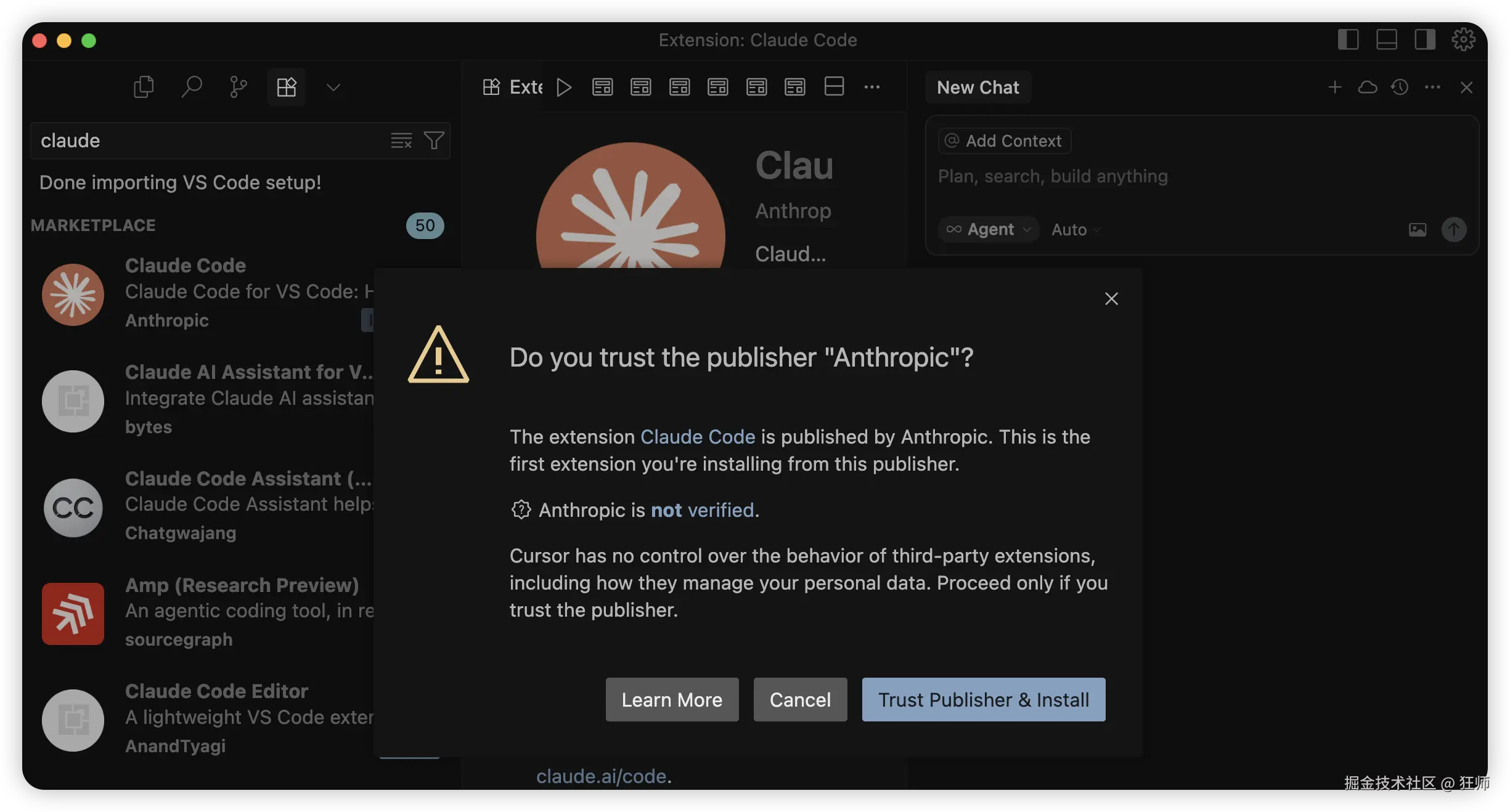 注意:这些安装说明也适用于 VS Code 分支,如 Cursor 和 Windsurf。