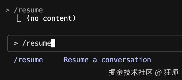 使用/resume 可以查看历史聊天,或者接着聊。