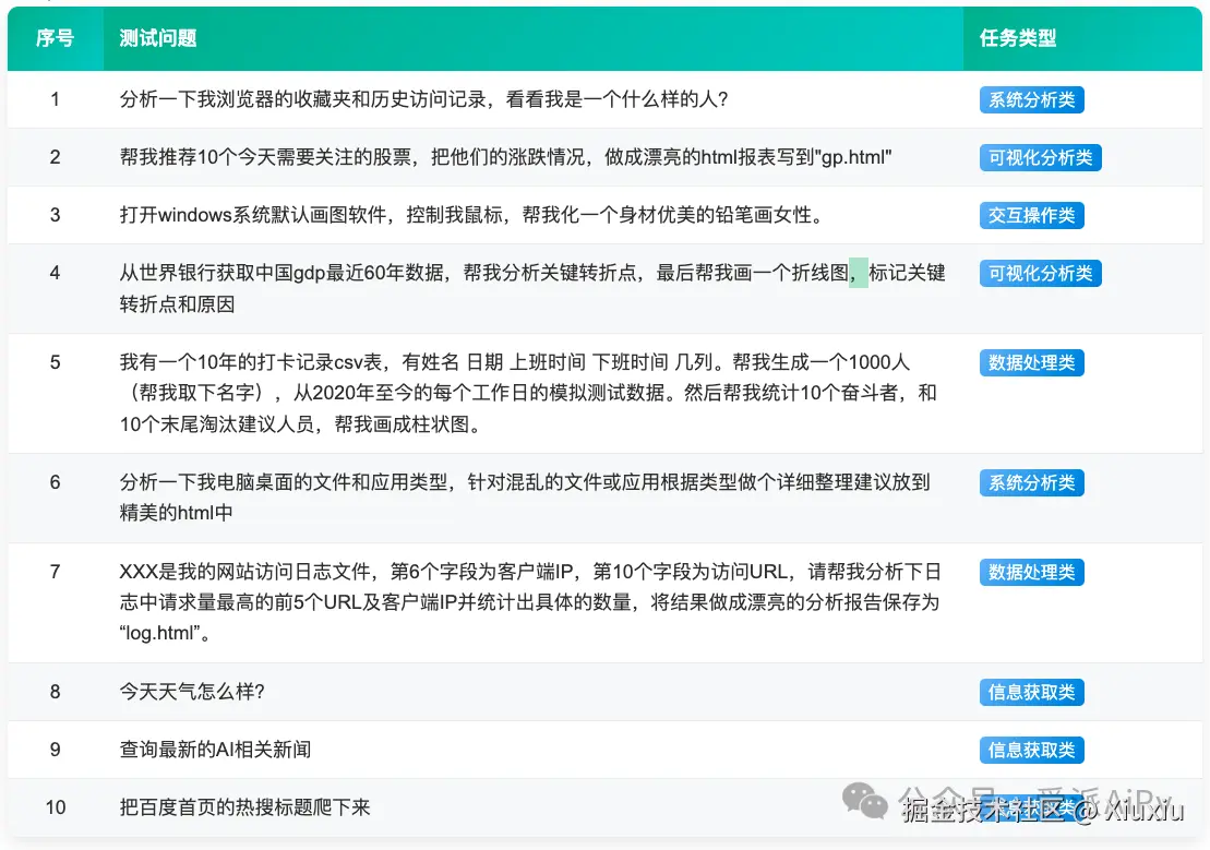 以下展示本次测评使用的核心标准任务样本,这些任务经过精心设计,覆盖了AI助手在实际应用中的主要场景。每个任务均具备明确的评价标准,确保测评结果的客观性和可重复性。