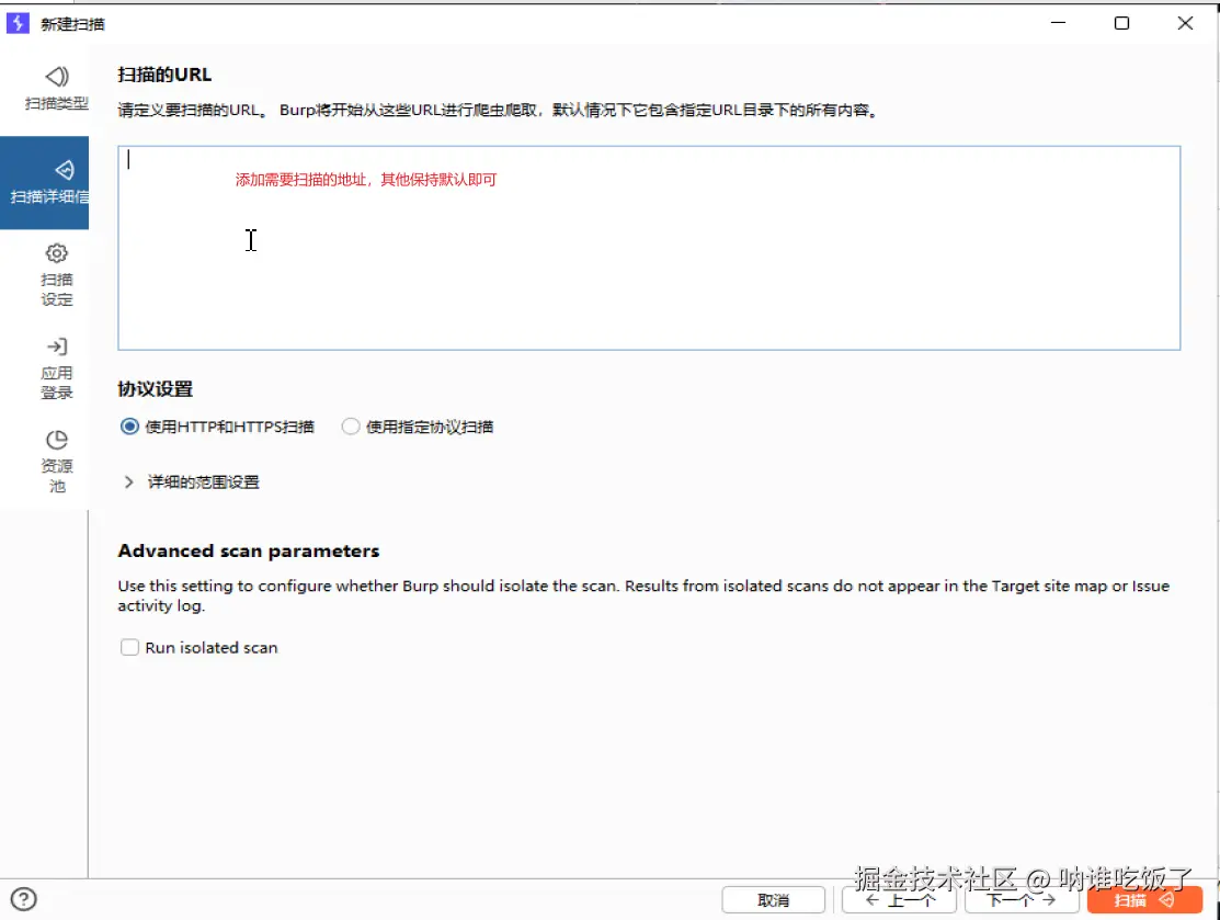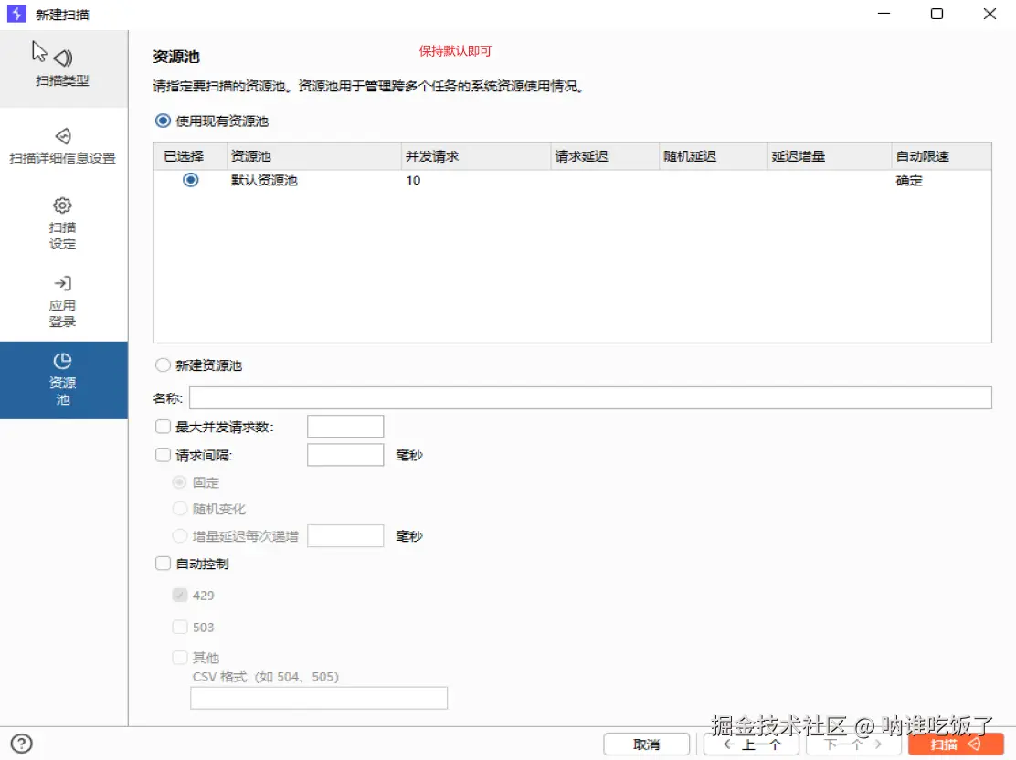- 新建扫描并配置扫描参数,完成设置点击扫描即可开始扫描。