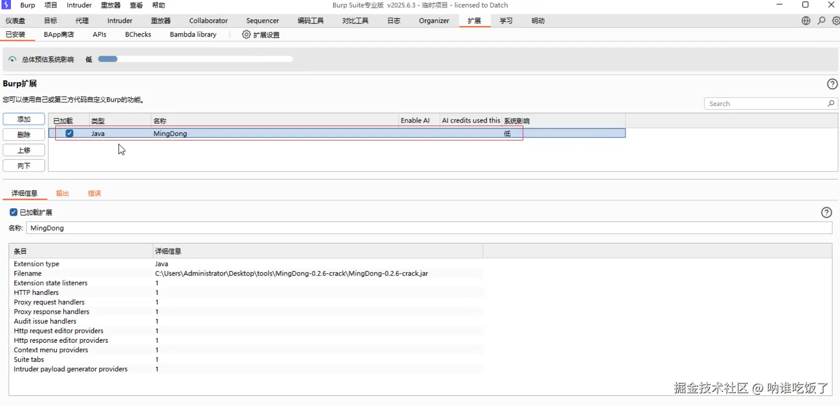 五、Burp安装明动插件