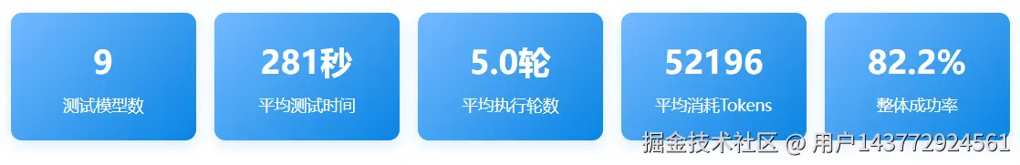 平均5.0轮的执行轮数表明多数模型已具备良好的任务理解能力。Claude系列在一次性任务完成率上领先,提供了更流畅的交互体验。新加入的模型在学习用户意图方面还有进步空间。