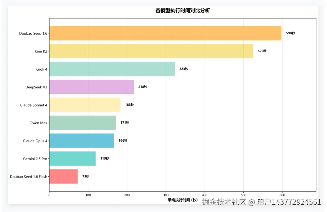 执行效率直接关系到用户体验质量。测试数据显示,Doubao Seed 1.6 Flash以其优化的架构在响应速度上领先群雄,平均执行时间仅需73秒。Claude系列在成功率上表现卓越,响应速度上也表现良好。Doubao Seed 1.6成功率满分,速度却相对较慢,这种差异反映了不同模型在速度与精度之间的权衡策略。