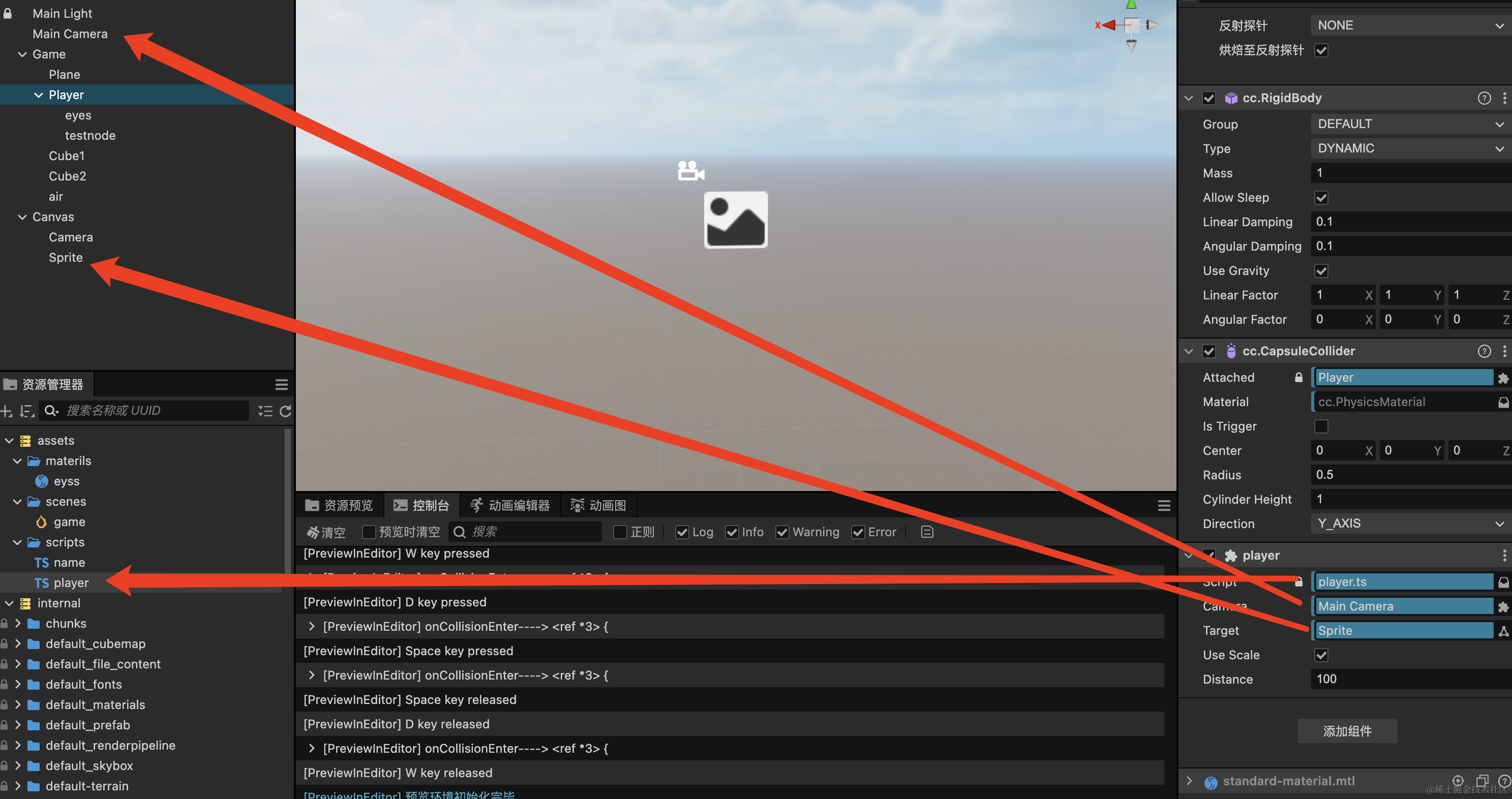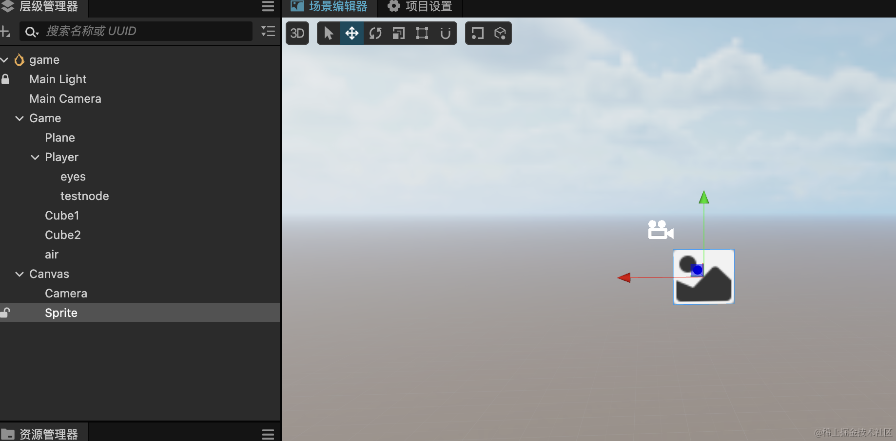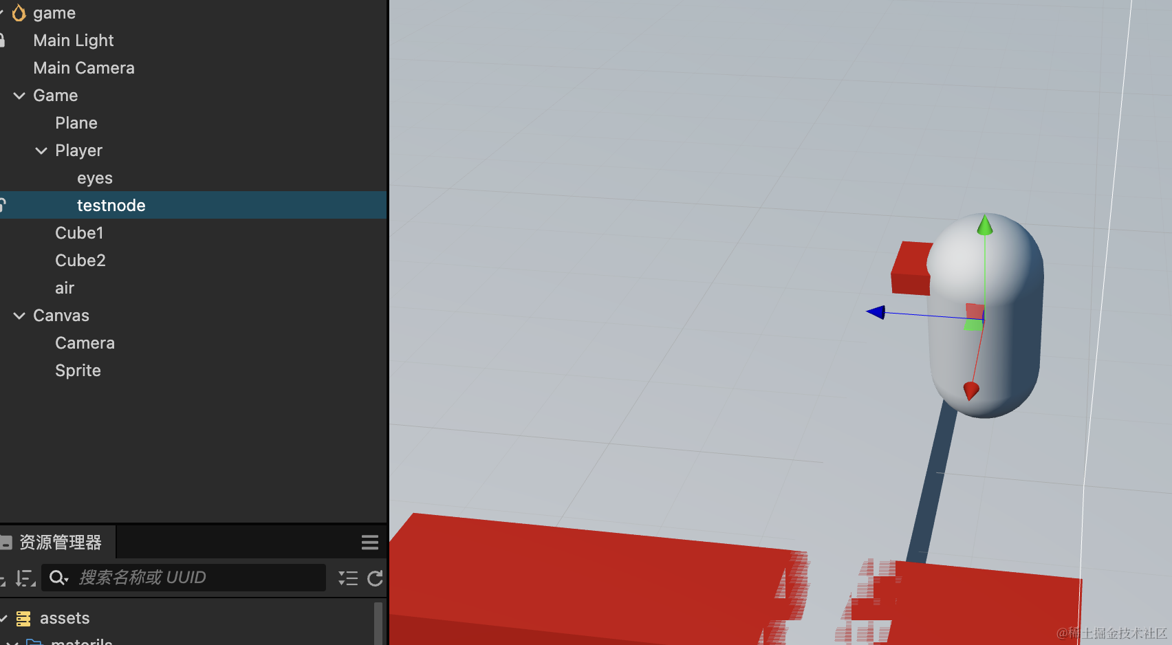 创建一个玩家的3d节点,然后在这个节点下创建一个参考节点testnode