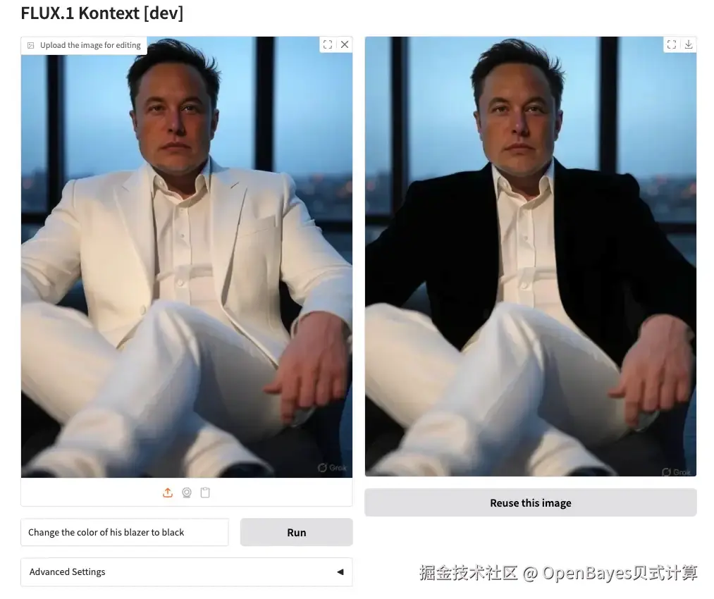 目前,「FLUX.1-Kontext-dev:文本驱动的一键图像编辑」 教程已上线至 OpenBayes 公共教程中,点击下方链接即可一键部署。