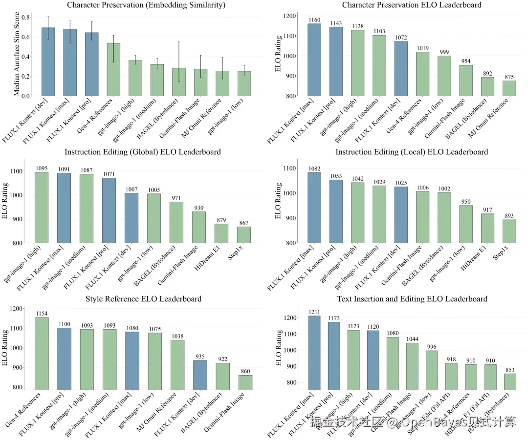 此外,FLUX.1 Kontext 在扩展功能的同时还极大地提高了性能。在 KontextBench 上的人工评测显示,FLUX.1 Kontext 在多数类别中表现优于现有开源模型闭源模型,可以说 FLUX.1 Kontext 已成为了图像生成模型里的新标杆。