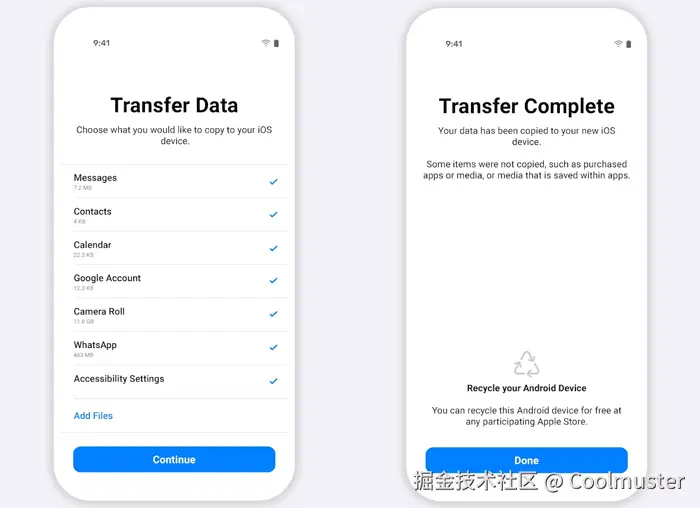 “迁移至iOS旨在将内容从Android设备迁移到iOS 。它支持联系人、消息历史记录、相机照片和视频、网页书签、邮件帐户和日历。使用此应用的一个主要限制是您的 iPhone 必须处于设置状态。如果您已完成 iPhone 的设置,则需要将 iPhone 恢复出厂设置才能使用“迁移至iOS程序。