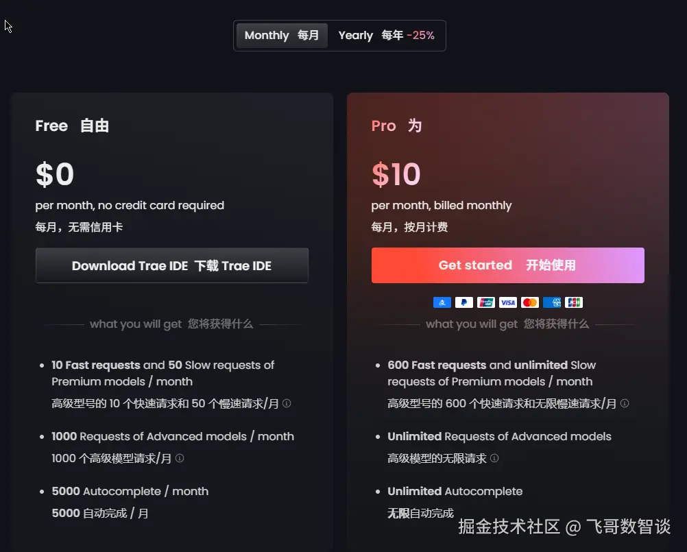 今天主要试用的就是 Trae,也买了 Pro 订阅,21块多,还可以。