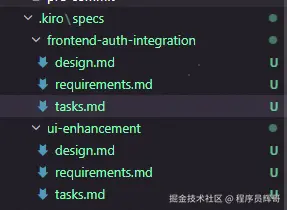 这个是Kiro引入的一种开发规范,它会在编码前自动生成结构化文档,包括需求文档(requirements.md)、系统设计文档(design.md)和任务清单(tasks.md)。这些文档是"活文档",会随着代码的演变而同步更新