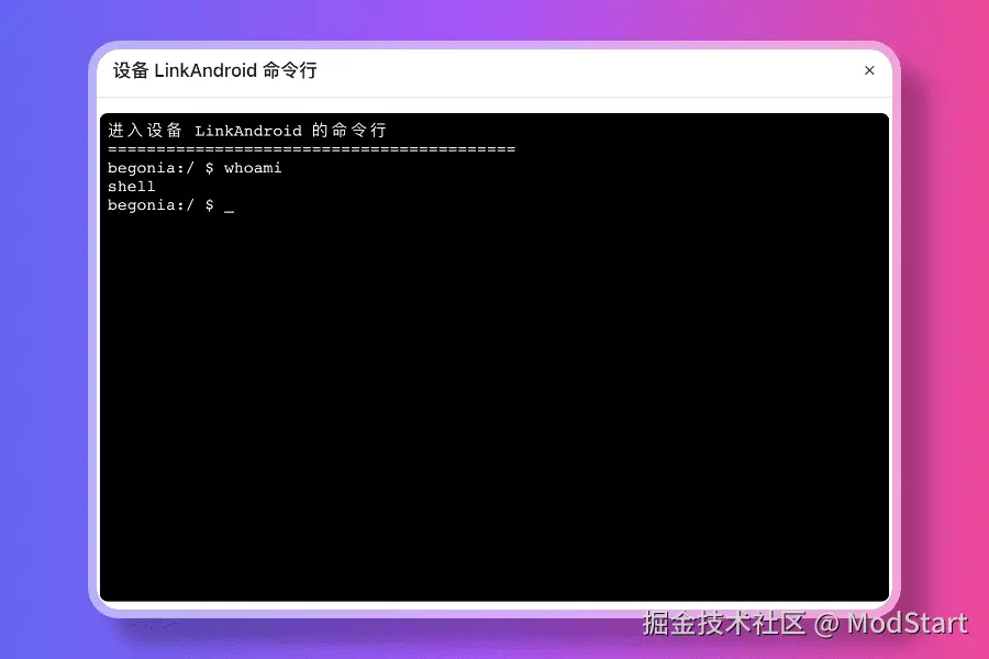支持 adb scrcpy 常见命令运行,一键点击进入手机,shell 交互方式更友好