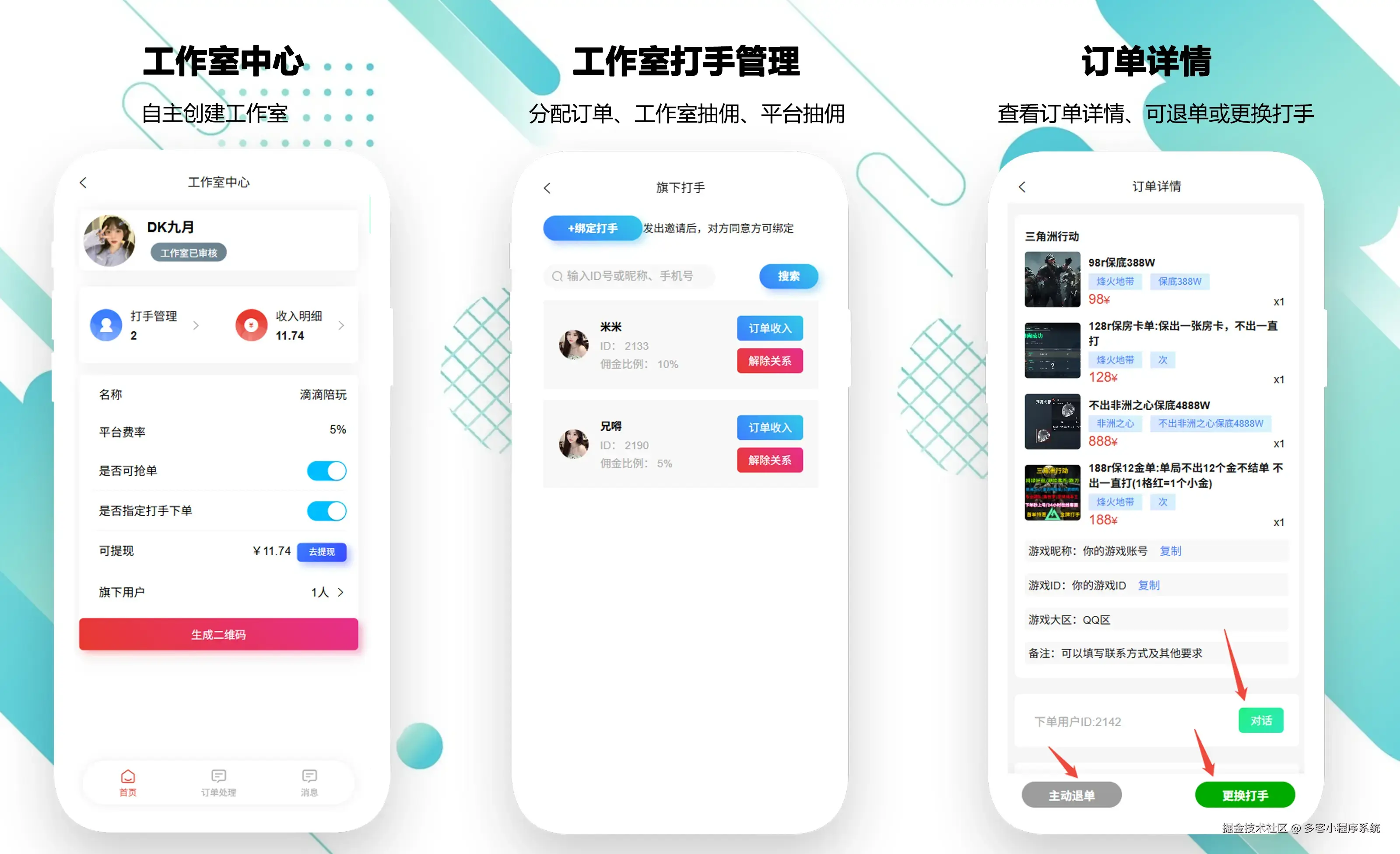 现在三角洲代练护航正是市场火爆,人人参与的情况。各个工作室工会都在开展自己的三角洲护航陪练服务,比如多少钱包多少金、出多少红、包撤离带出多少金币等等,这些他们都离不开一个完善的用户下单-代练接单及后台管理的服务号小程序代练系统平台。