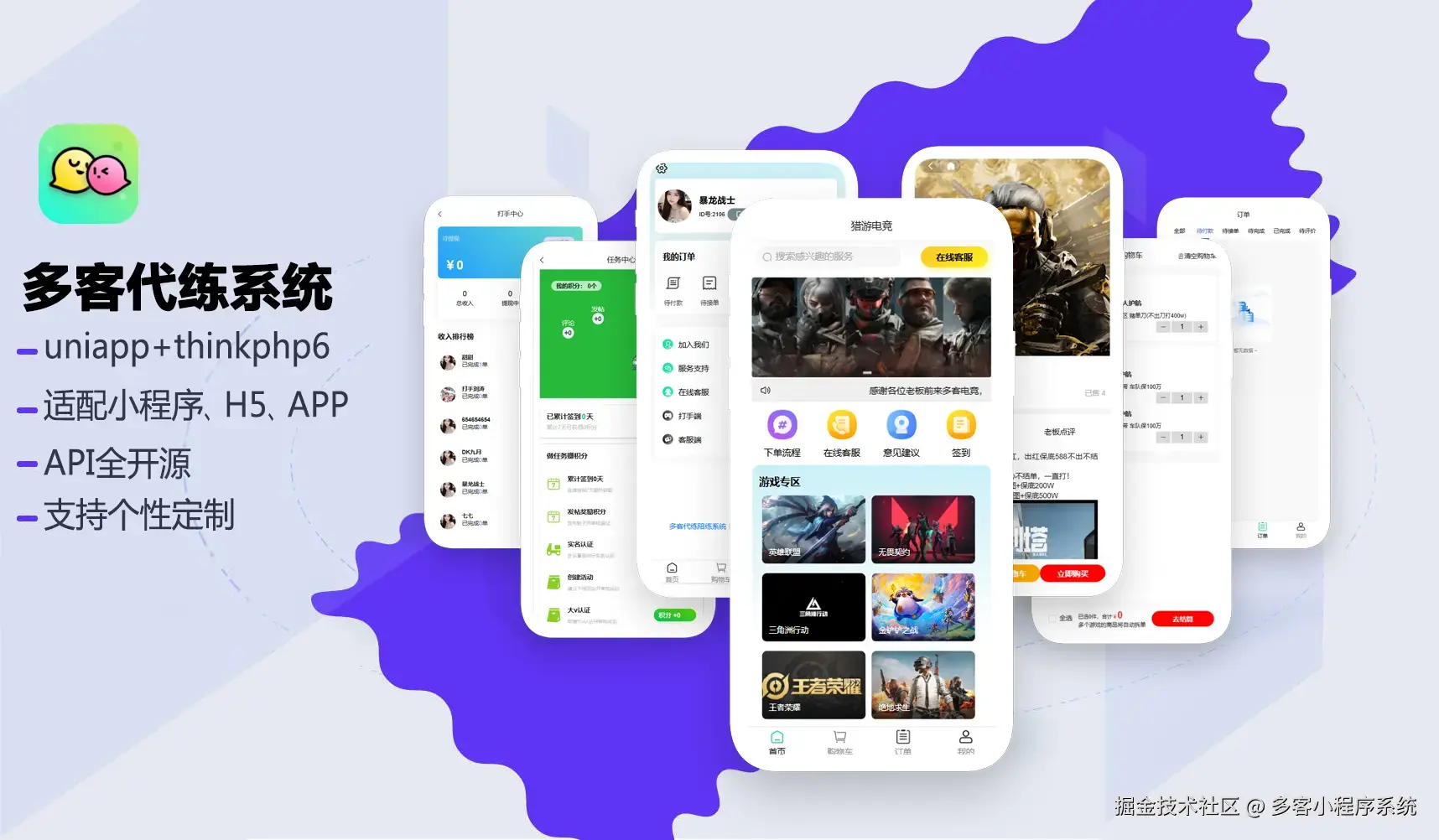 4.完善的代练护航小程序源码,包含前后端源码(后端TP6+前端Uni-vue2.0),独立部署,自主运营,通过市场检验,逐渐完善。