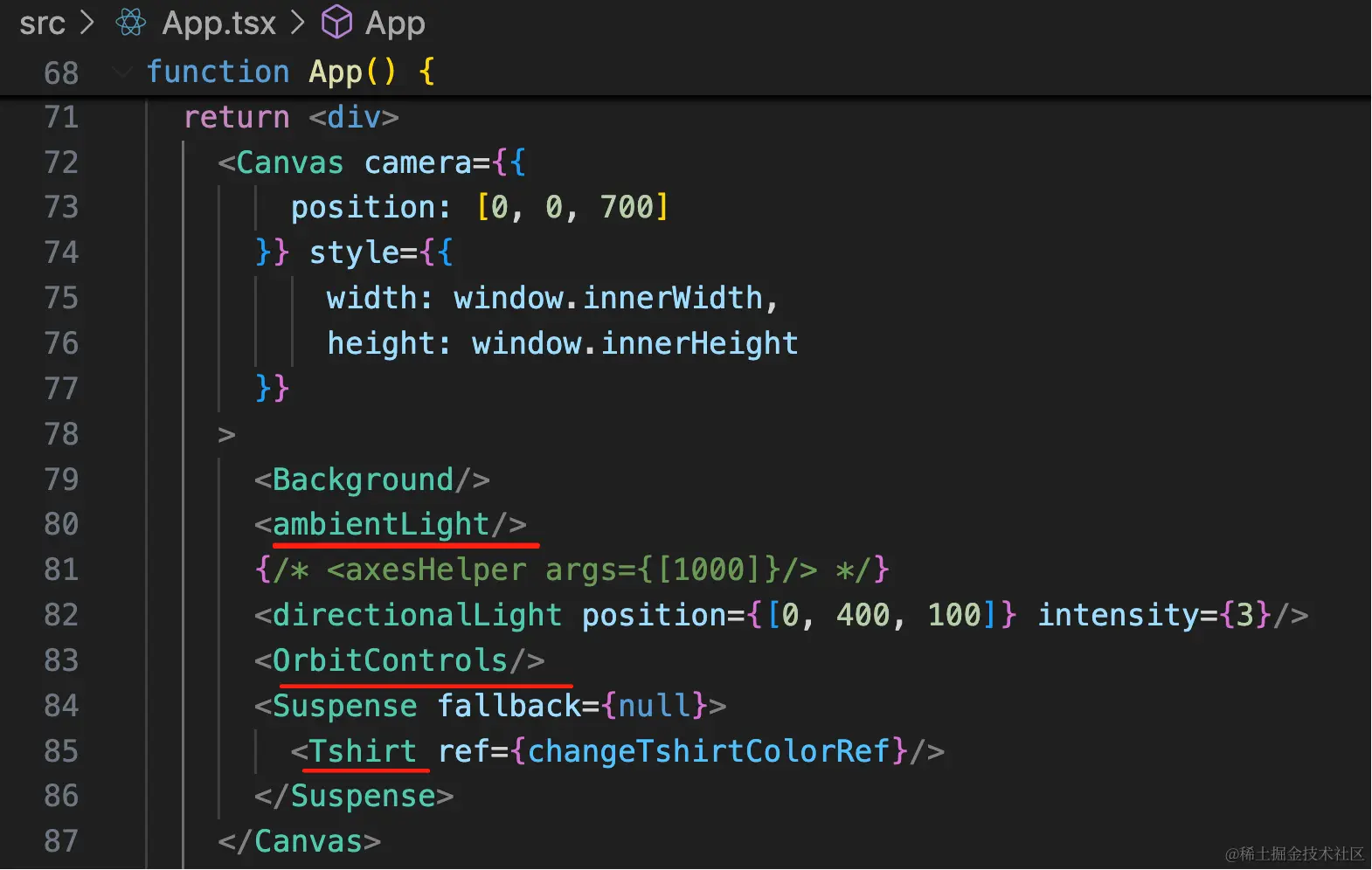 主要是练习用 react 组件的方式写 3D 场景的: