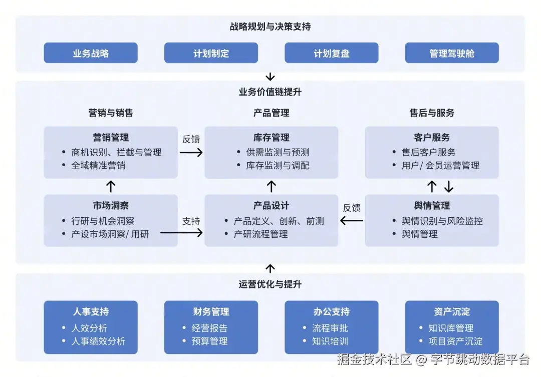 当“数据”与“知识”处于割裂态,BI工具能处理数据库中的规整数据,却无法连接市场营销手册中的策略逻辑,很多运营知识从未被数据系统调用;许多企业的数据分析师们,日常工作会有大量时间消耗在跨部门语义对齐上。而企业大模型的落地,也离不开高质量的知识数据。无论是对模型的精调,还是基于数据构建的企业知识中台,才能实现业务场景的智能化。