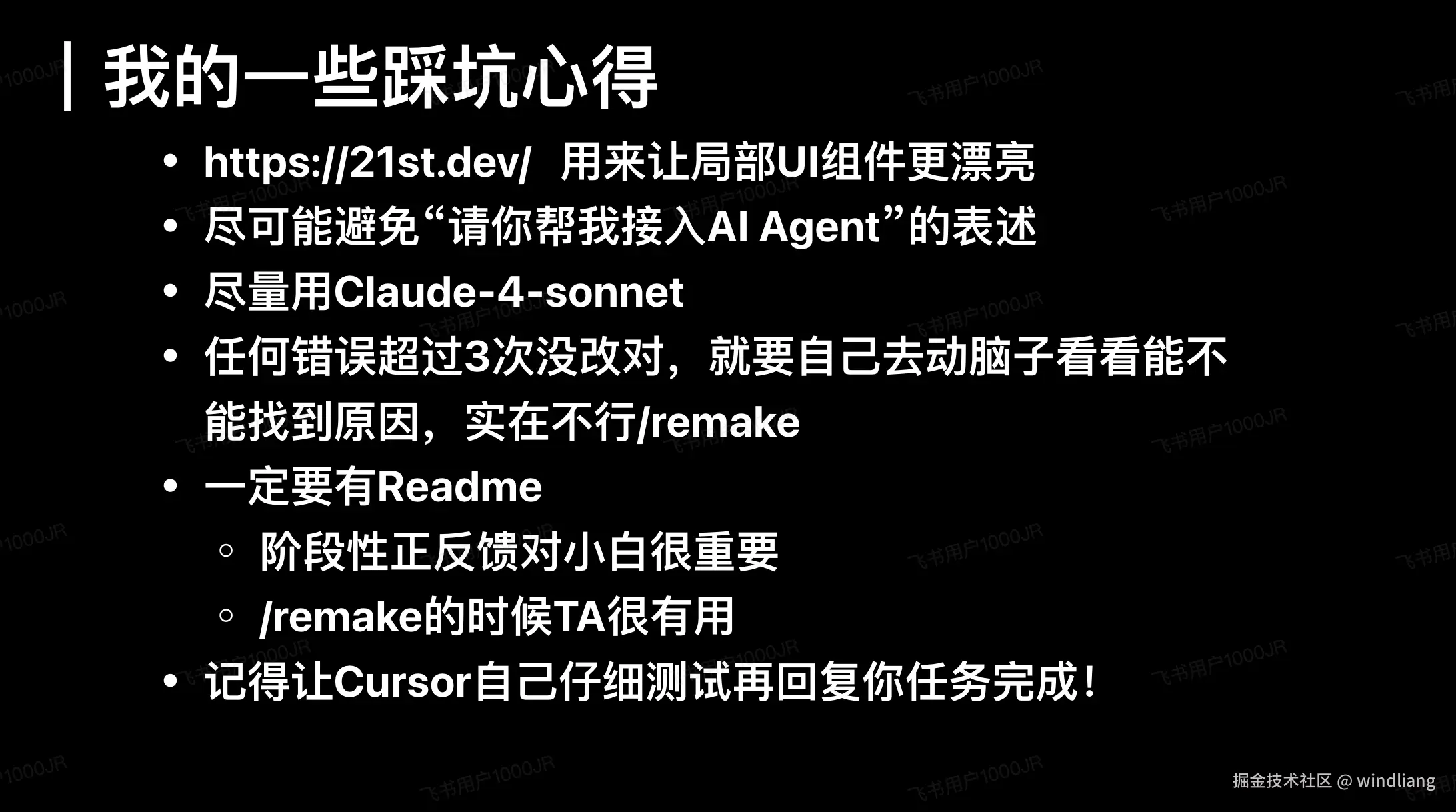之前我写 Cursor 使用经验 时已经意识到了 Cursor 不止于编程,比如写技术文档、画流程图、处理 Excel 等,这次分享会又开阔了视野: