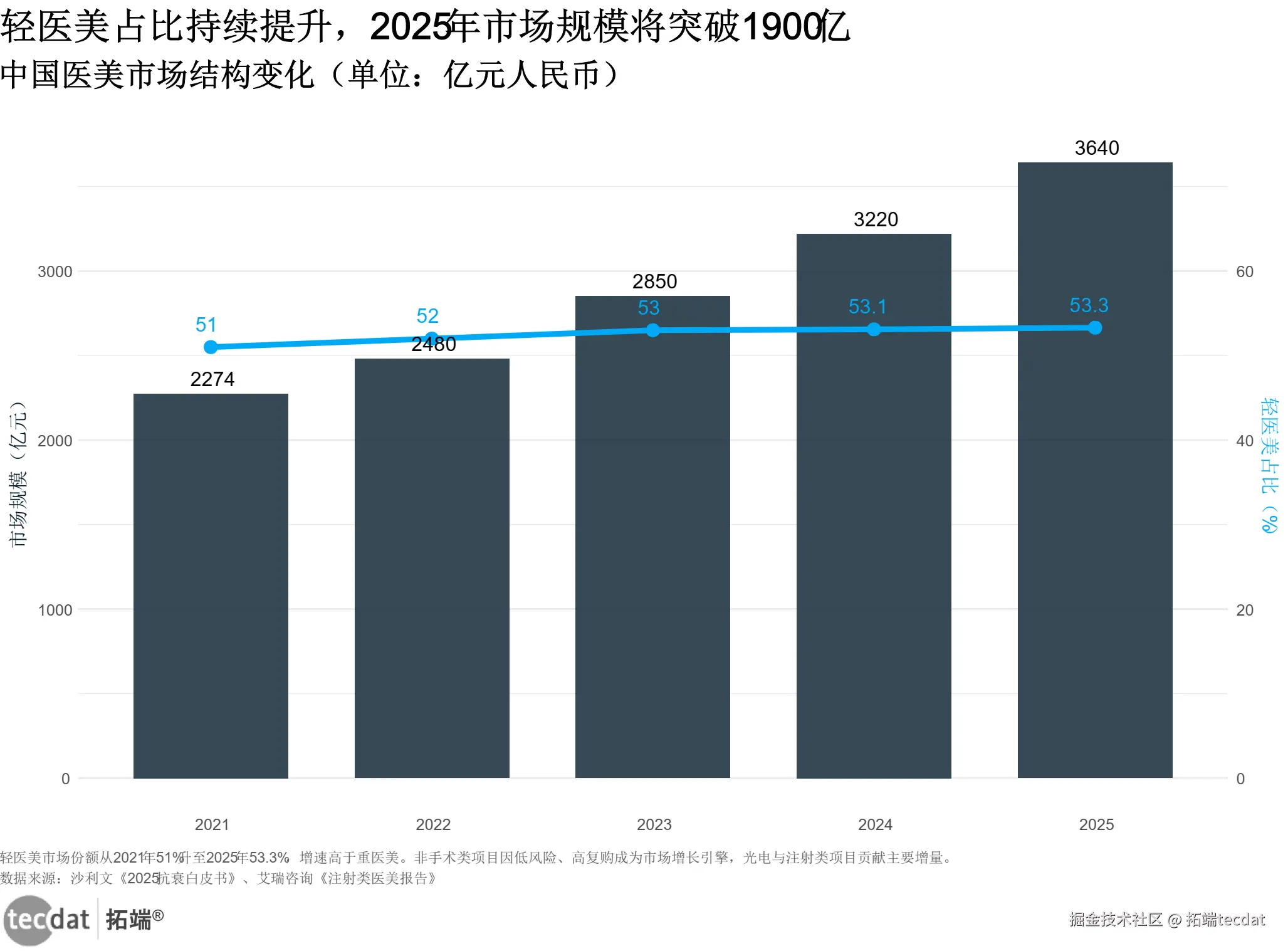 | 《2025中国轻医美行业现状报告》(嘉世咨询) | 2025年轻医美市场规模2580亿元 | 略高于沙利文的1940亿元 | 嘉世统计口径包含部分生活美容跨界项目 |