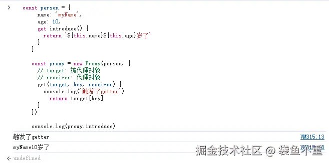 // 返回值是目标对象的属性值 proxyPerson.xxx