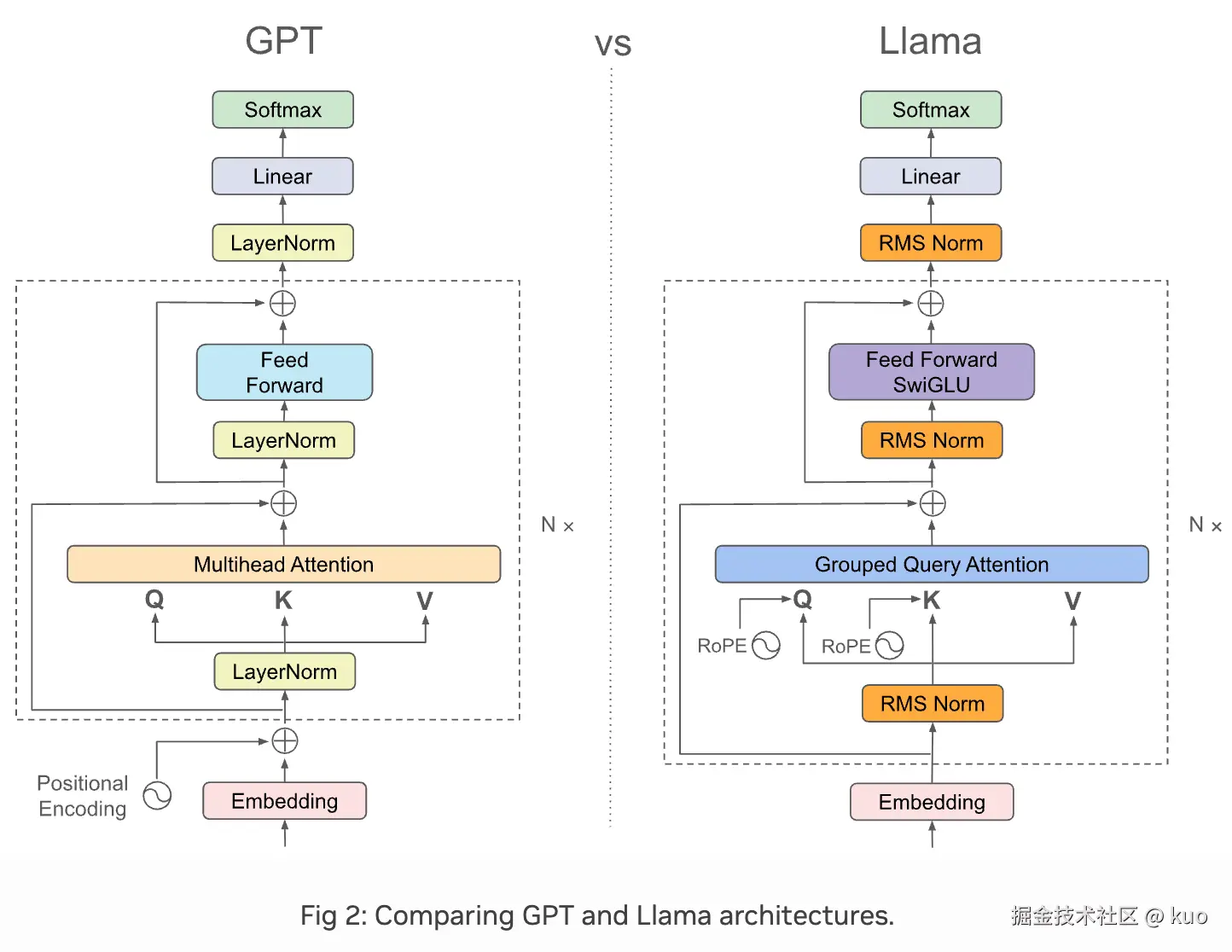 GPT和Llama3的架构对比,可参考链接,如下: