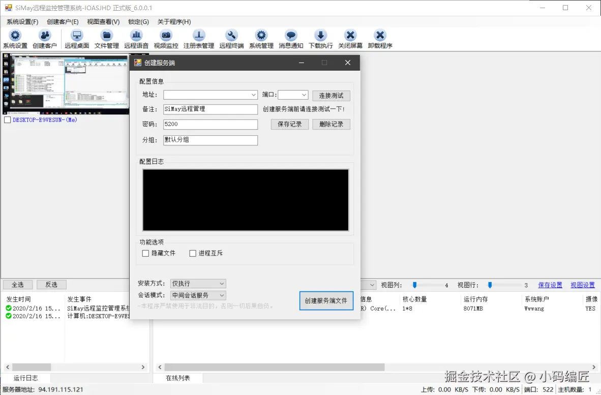 远程控制、IOCP、中间会话服务器、组件化架构、Web监控、二进制序列化、UAC捕获、企业定制、开源项目、SiMay、中间会话、逐行扫描、WebSocket、C#、开源、Windows、教育研究