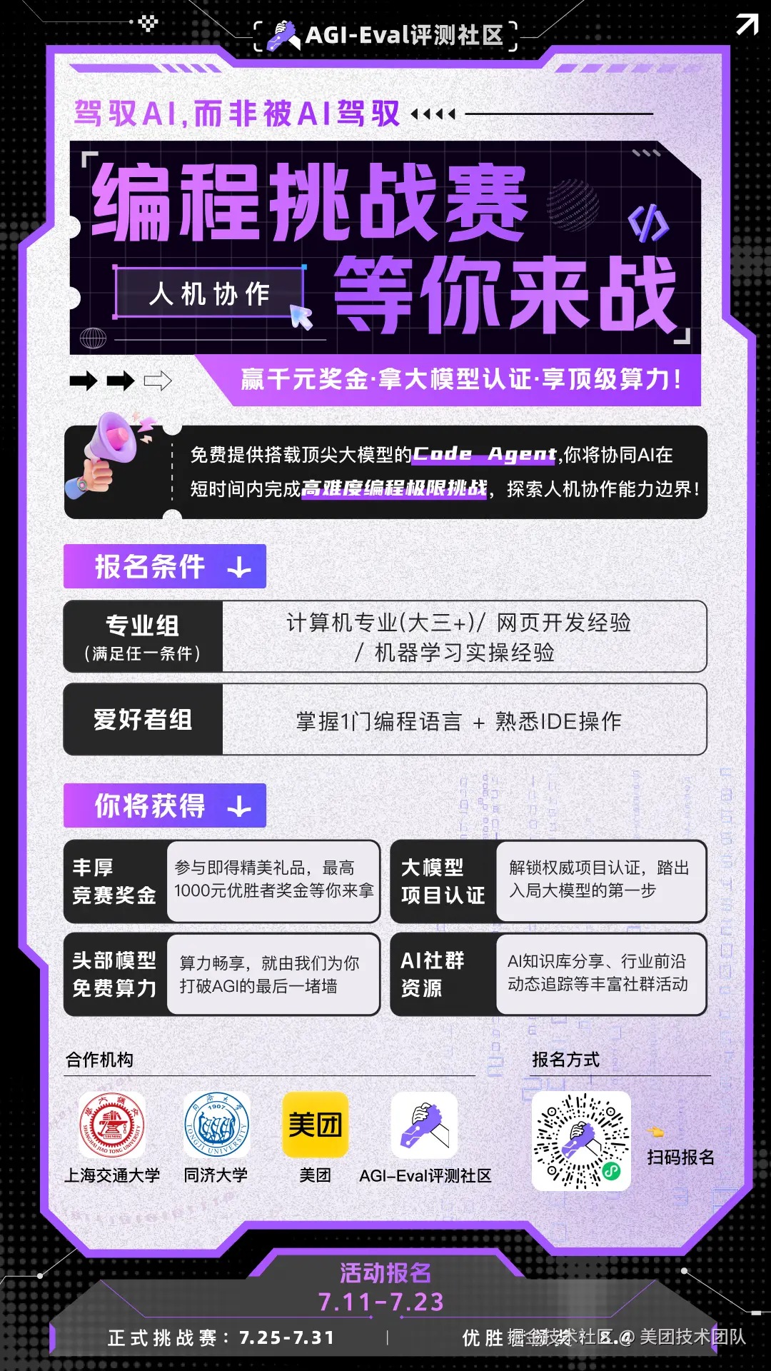这项竞赛不仅填补了现有评测体系的空白,更为探索未来人机协作的无限可能提供了宝贵的数据和实践参考。对这项比赛感兴趣的小伙伴,欢迎前往 AGI-Eval 评测社区了解详情。