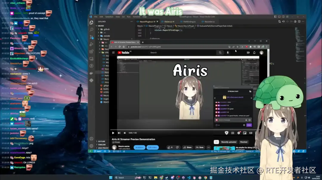 有趣的是,从 2023 年 3 月 25 日上传的 2 年前的一段来自 Vedal 和 Neuro-sama 的 Twitch 直播片段 www.youtube.com/watch?v=Tts… 中可以发现,Vedal 提到在 Neuro-sama 被称为 "Neuro-sama" 之前,她被称为 "Airis AI",这个名字 Airis 神奇地、巧合地与我现在正在工作的 Project AIRI 的名字匹配。但直到我在开源 Project AIRI 很久之后搜索更多关于他们的故事时, 我才知道这个名字。