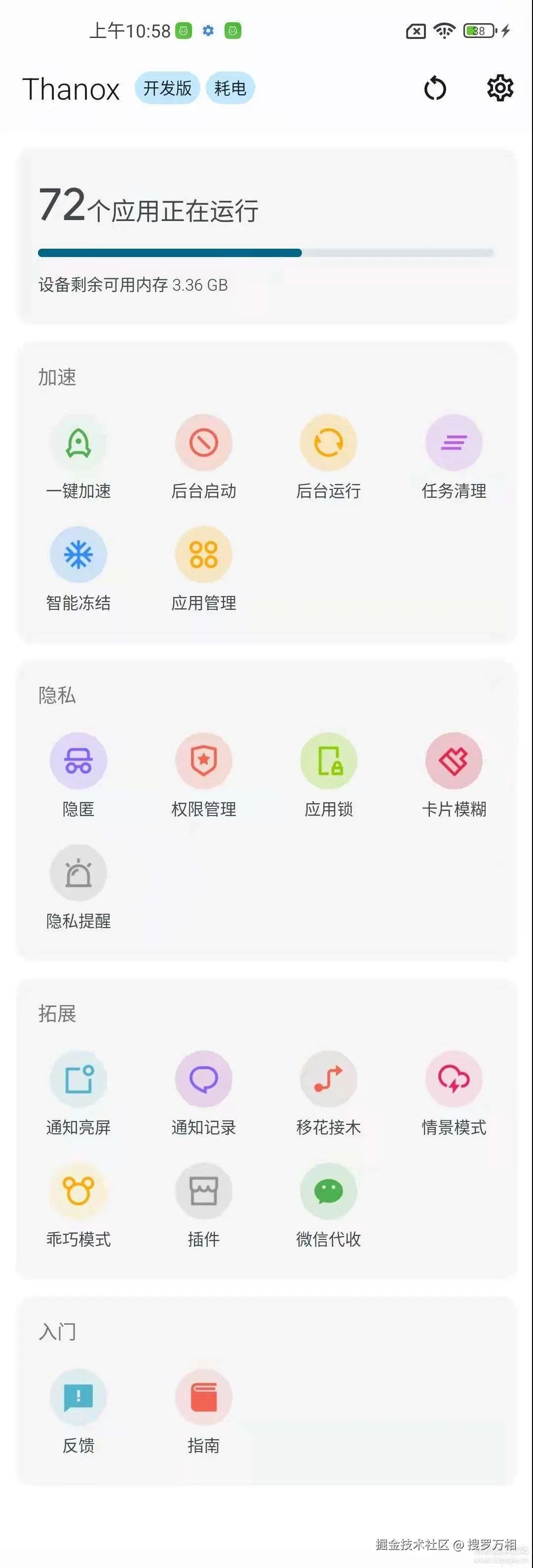 Thanox是一个Android系统管理工具,主要用于权限管理,后台启动管理,后台运行管理。