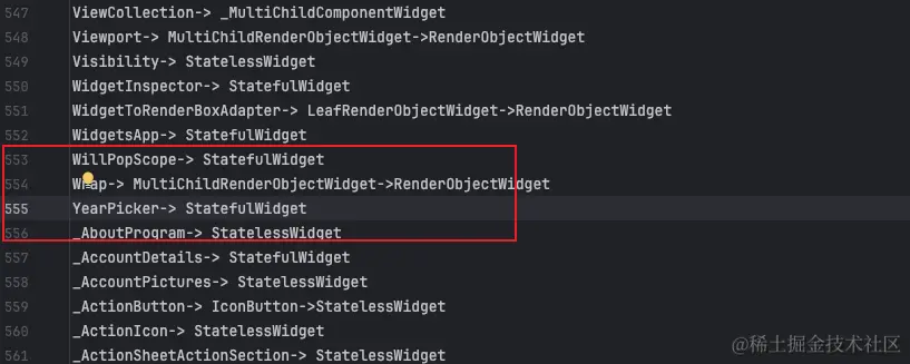 如果按上一题,将名称打印出来,我们就可以得到 Flutter 源码中的所有组件名称。目前 Flutter 3.27.4 中非下划线的组件一共 555 个。
