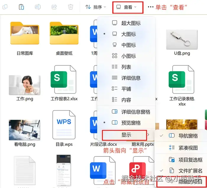 在磁盘中消失的文件,不一定都是被误删了,还可能是因为文件被隐藏了起来。硬盘怎么恢复数据?我们找到丢失文件的磁盘后点击进入,在存储页面的上方可以点击“查看”,然后把鼠标指向“显示”,最后点击“隐藏的项目”。