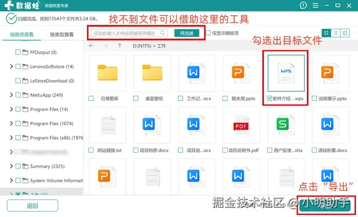 温馨提示:如果找不到文件也不用慌,可以通过“搜索框”“筛选器”等辅助工具进行范围缩小,能够更快找到目标文件。
