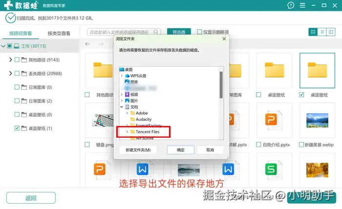 步骤3: 别忘了还需要在小窗中选择恢复文件的存放位置哦。