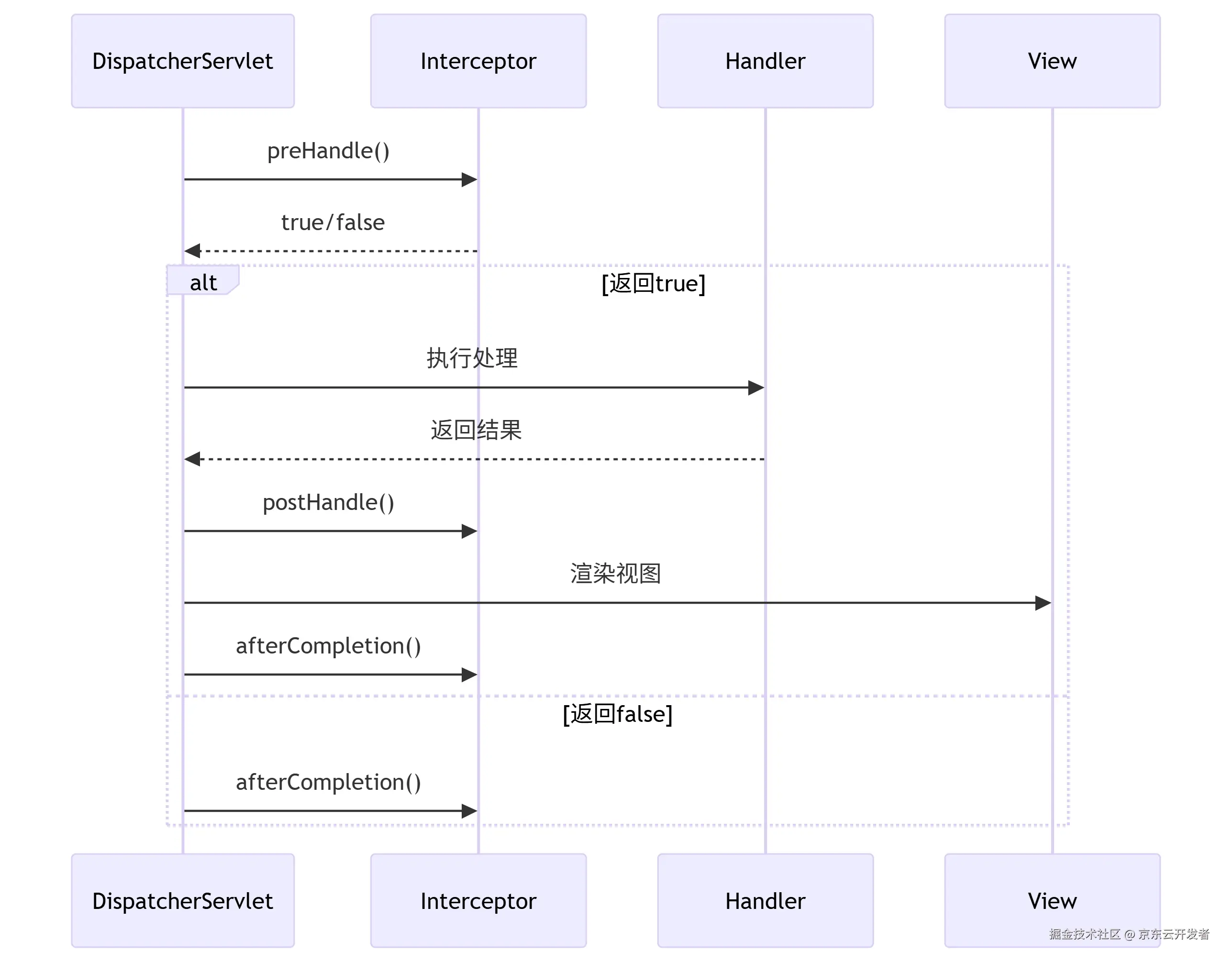 拦截器在DispatcherServlet的处理流程中扮演重要角色:
