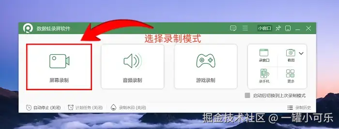步骤1:首先,启动数据 蛙录屏软件。进入主界面后,直接根据实际需求挑选录制模式。如果要记录电脑上的操作流程,就直接选择 “屏幕录制” 。