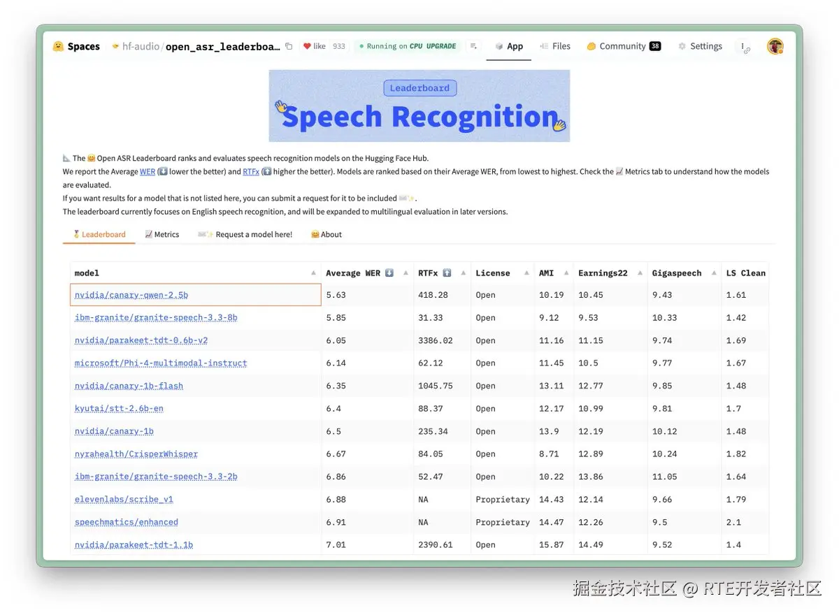 4、NVIDIA 新模型登顶 OpenASR 榜单,语音转录和语言理解统一模型, CC-BY 许可